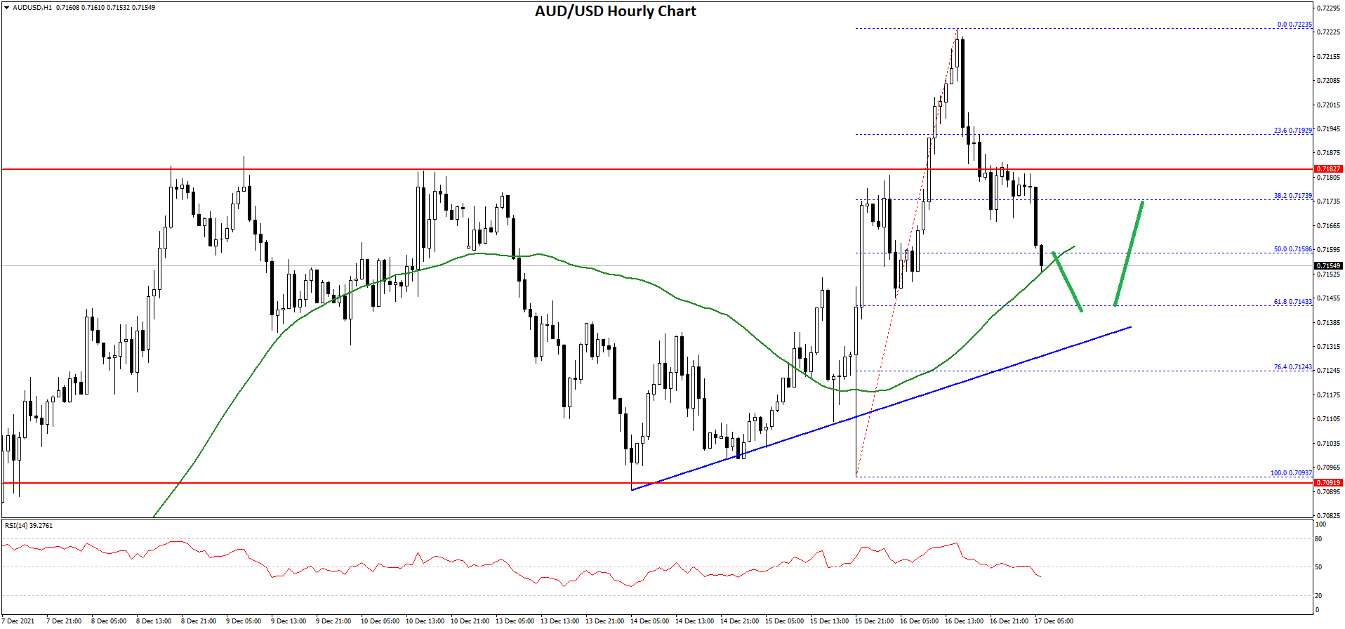 The pair even broke the 0.7220 resistance zone and the 50 hourly simple moving average. It traded as high as 0.7223 on FXOpen before it started a downside correction. There was a move below the 0.7210 and 0.7200 levels.