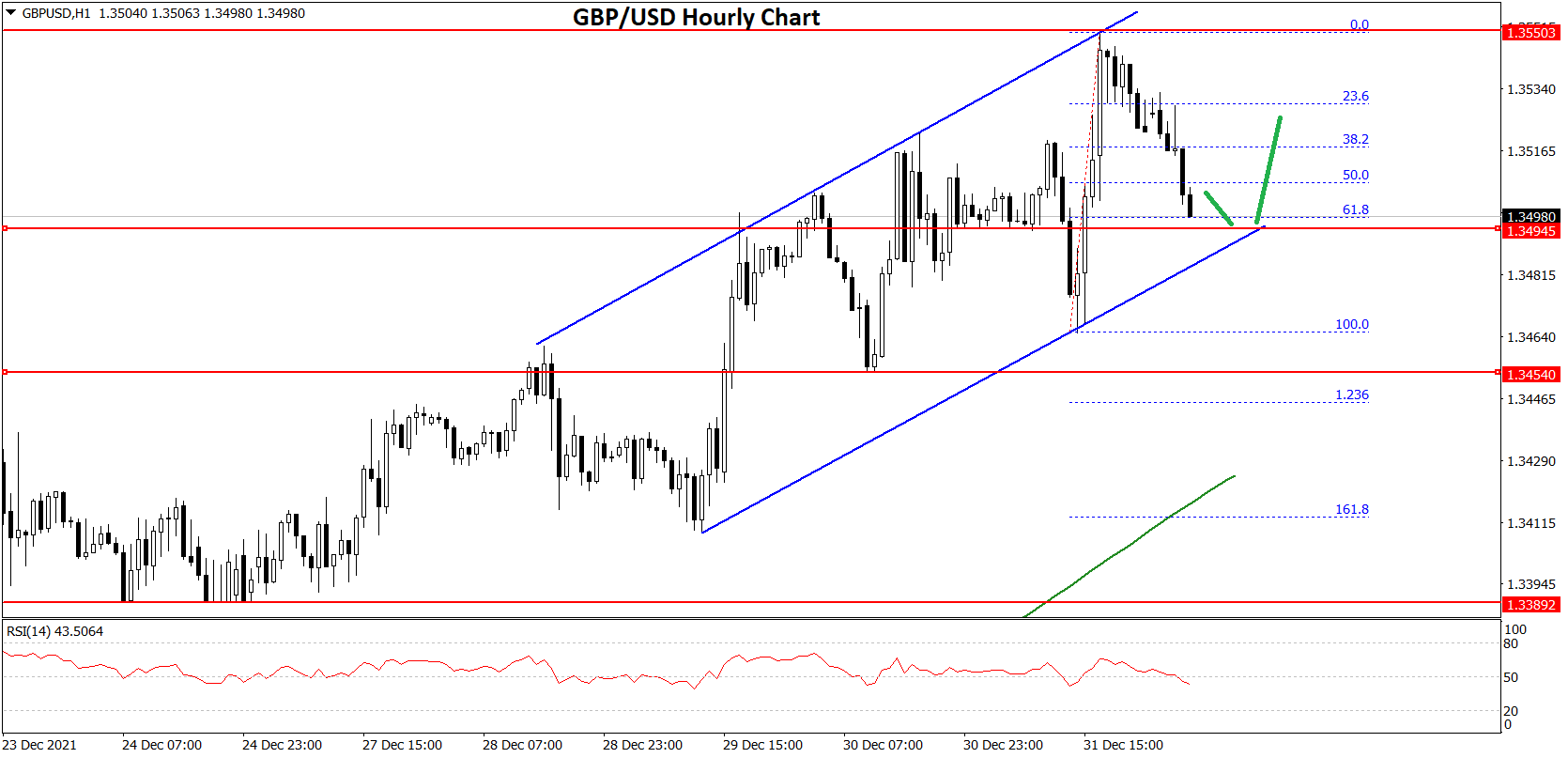 · There is a key rising channel forming with support near 1.3490 on the hourly chart of GBP/USD.