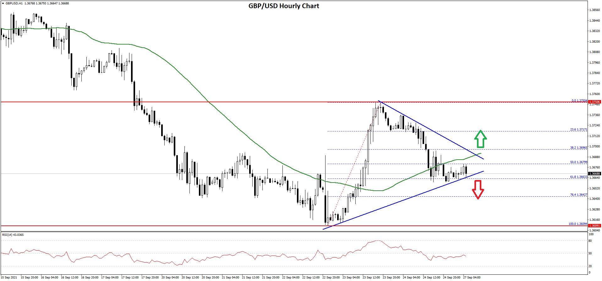 If there is an upside break above the triangle resistance, the price could surpass 1.3720. The main resistance is near the 1.3750 zone. Therefore, a proper break above the 1.3750 resistance could open the doors for a steady increase. The next major resistance for the bulls could be 1.3800.