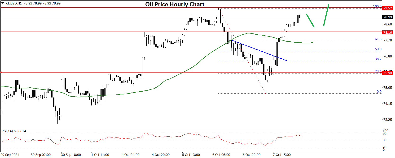 There was also a break above a short-term bearish trend line at $76.80 on the hourly chart of XTI/USD. The price is now trading above the $78.00 level and the 50 hourly SMA.
