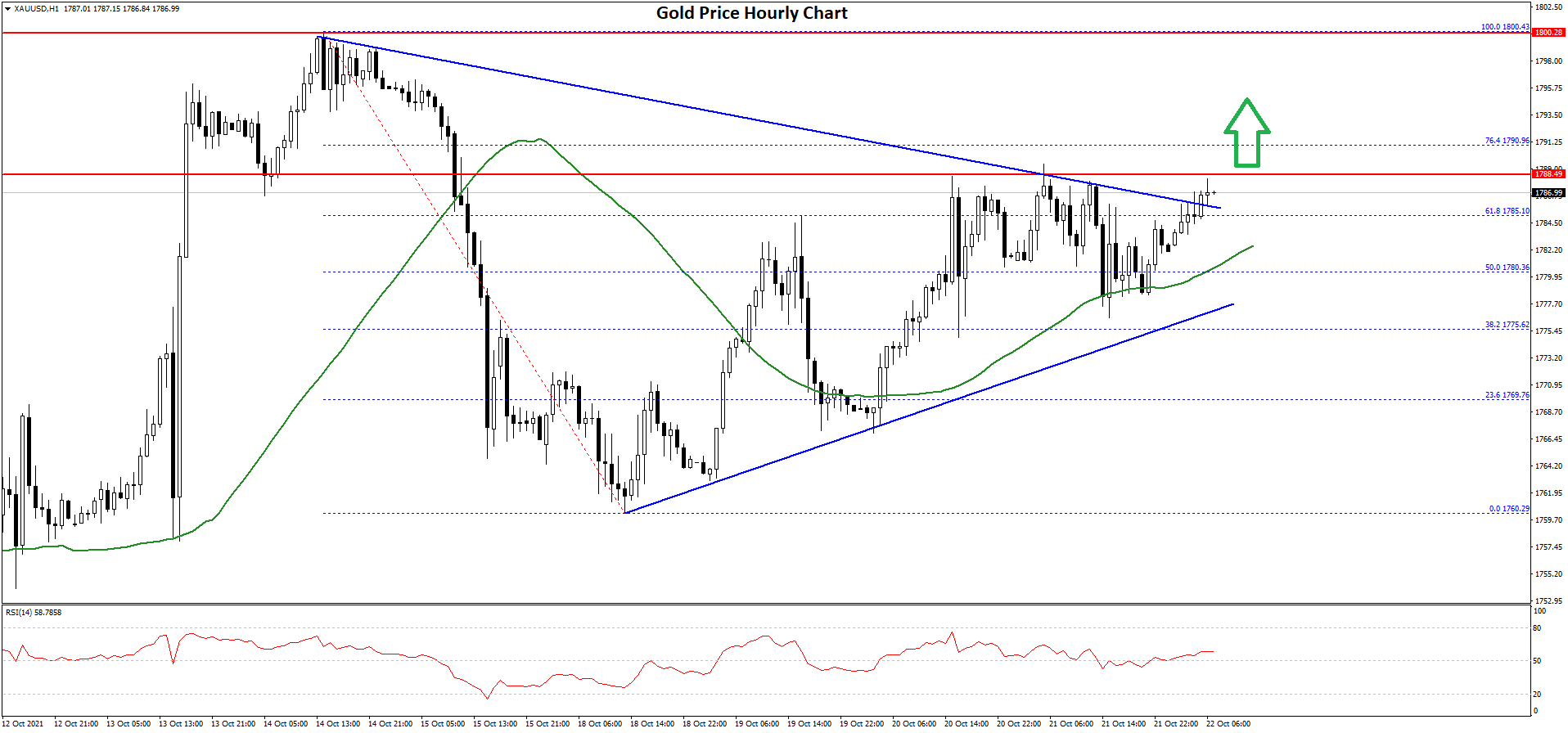 There was also a break above a major contracting triangle with resistance near $1,785 on the hourly chart of gold. An immediate resistance on the upside is near the $1,788 and $1,790 levels. It is near the 76.4% Fib retracement level of the key drop from the $1,800 swing high to $1,760 low.